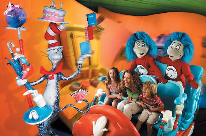 Who hasn't wished they could disappear into a Dr. Seuss story? Now you can. Grab a seat and swerve this way and that through one of Dr. Seuss’s most beloved classics. Each scene has been vividly re-created with colorful characters and crazy motion as you twist from room to room.