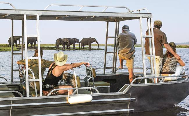 With a design specific for safari river cruising on the Chobe River, the 28-passenger Zambezi Queen offers a sophisticated onboard experience designed to maximize animal sightings. Your comfort is ensured when staying in any of the 14 air-conditioned balcony staterooms (which range up to 300 sq. ft), all decorated in contemporary style. The air-conditioned top deck of the ship offers a dining room, lounge, bar and pool area for your comfort. Enjoy game watching from your stateroom, or visit the top deck for a beverage, sun bathing and more game watching. Peruse the library of books, enjoy a board game and explore the riverbanks of the Chobe River on the Zambezi Queen.